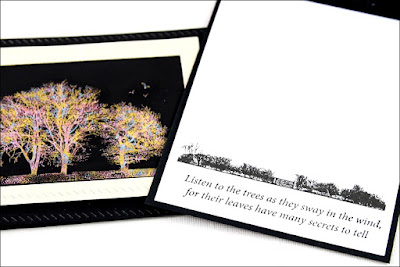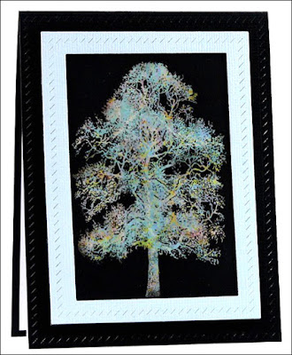 Joanna has been using a very effective new technique 'Black Magic' and the trees from the new plate, plus our Seville book papers, to make the following beauties....