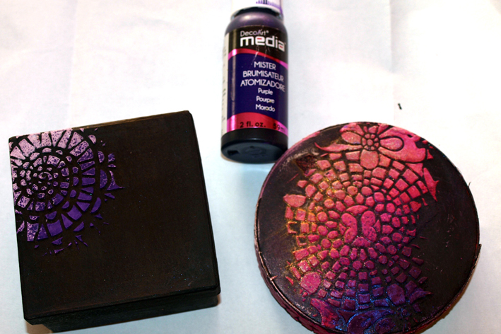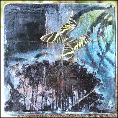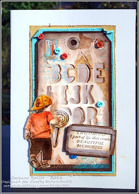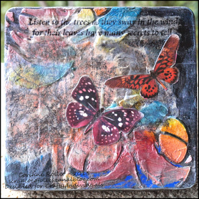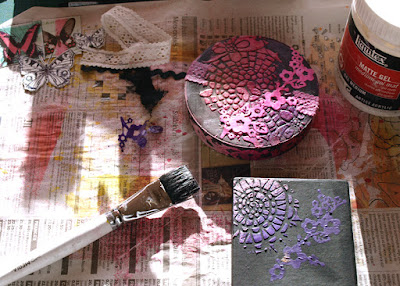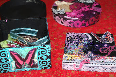 Meanwhile our latest Challenge is drawing to a close (about 27 hours to go at the moment) and tonight I will show you the rest of the inspirational pieces from the team. I have quite a few images sent over by Coco of her great 'lace and bits and bobs' and recycling makes, with a lovely step by step in pictures. The bright colours look fantastic against the black painting, and Coco had lots of fun making them using stamps, stencils and our mini images!