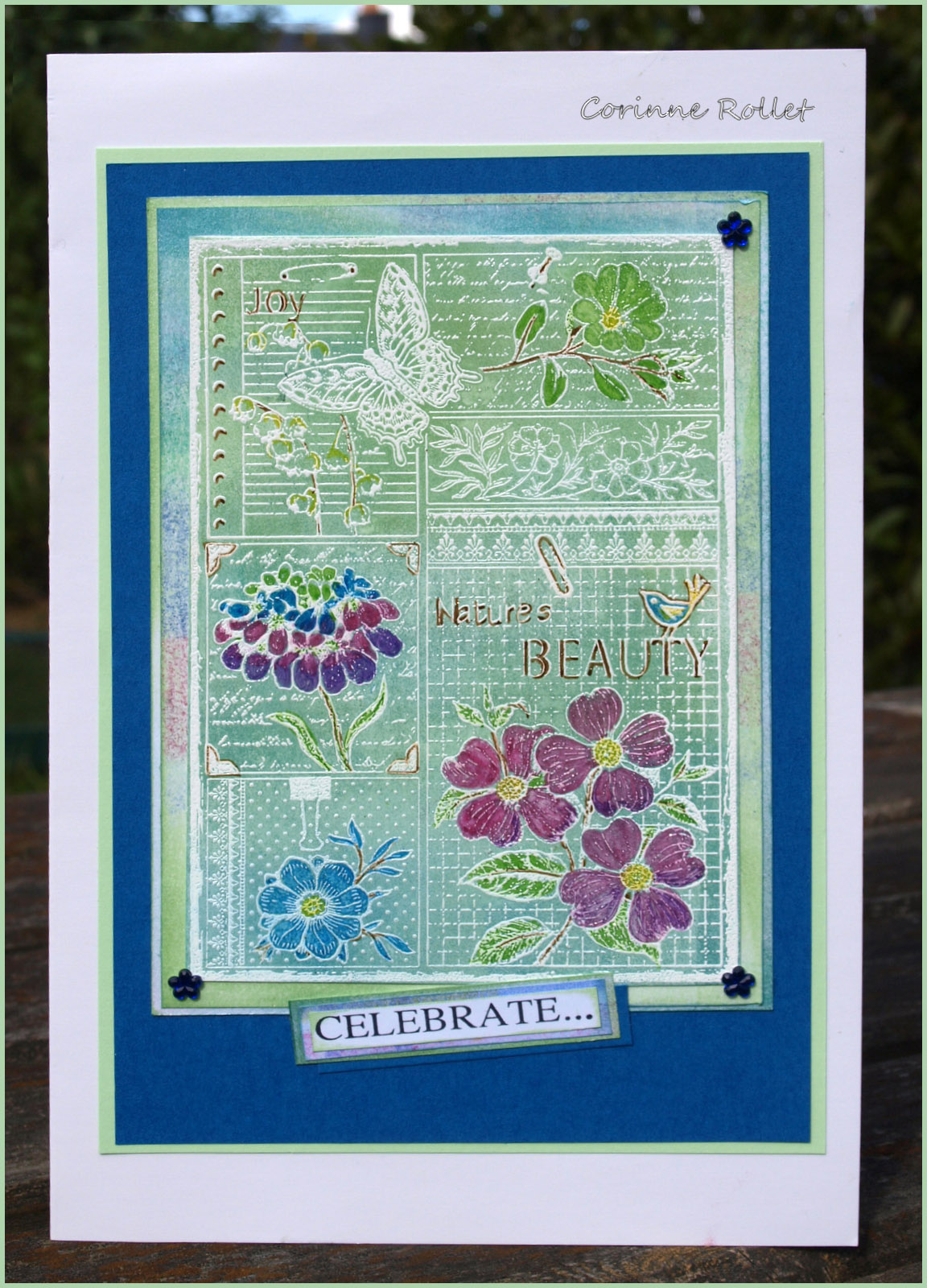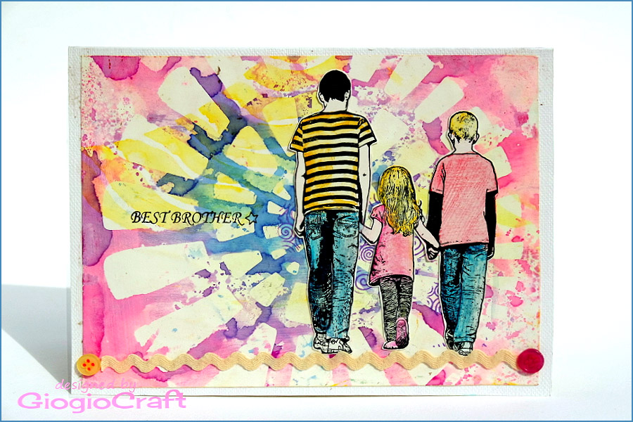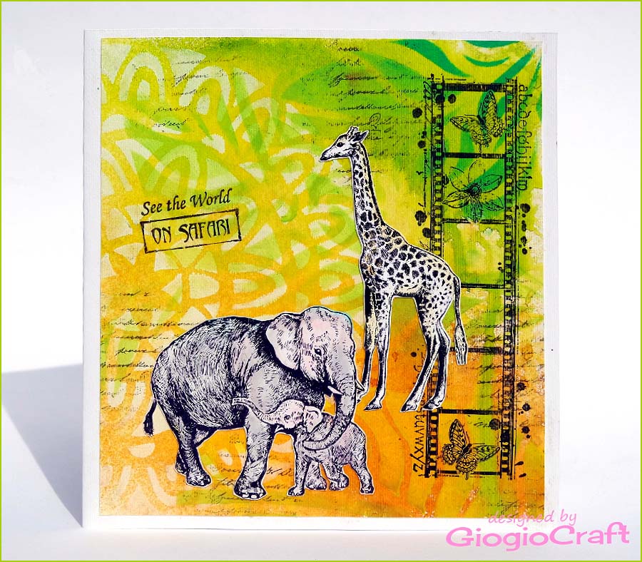 I also have some bright and cheery makes by Gio using CI stamps and her own range of background stencils...