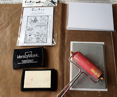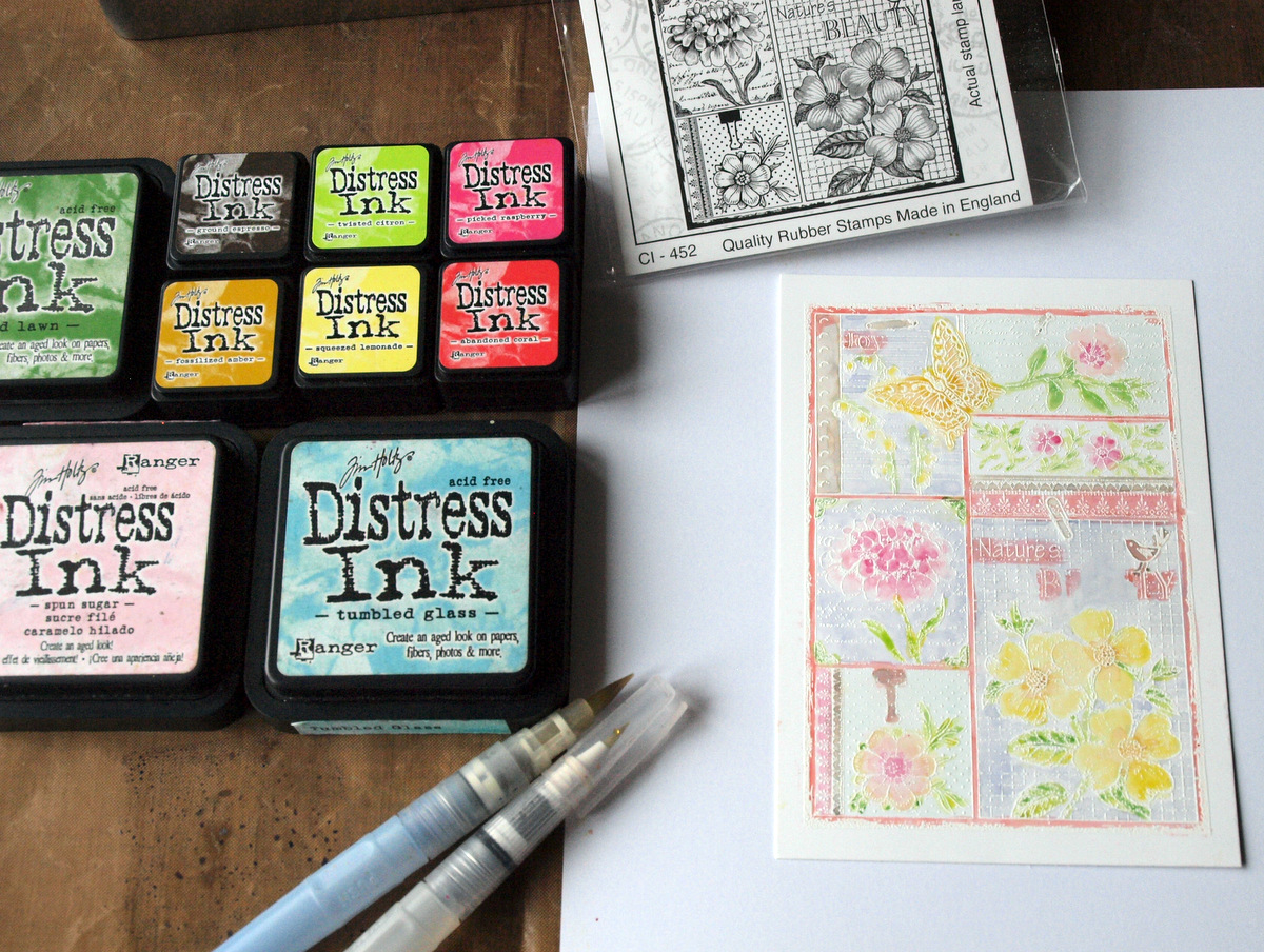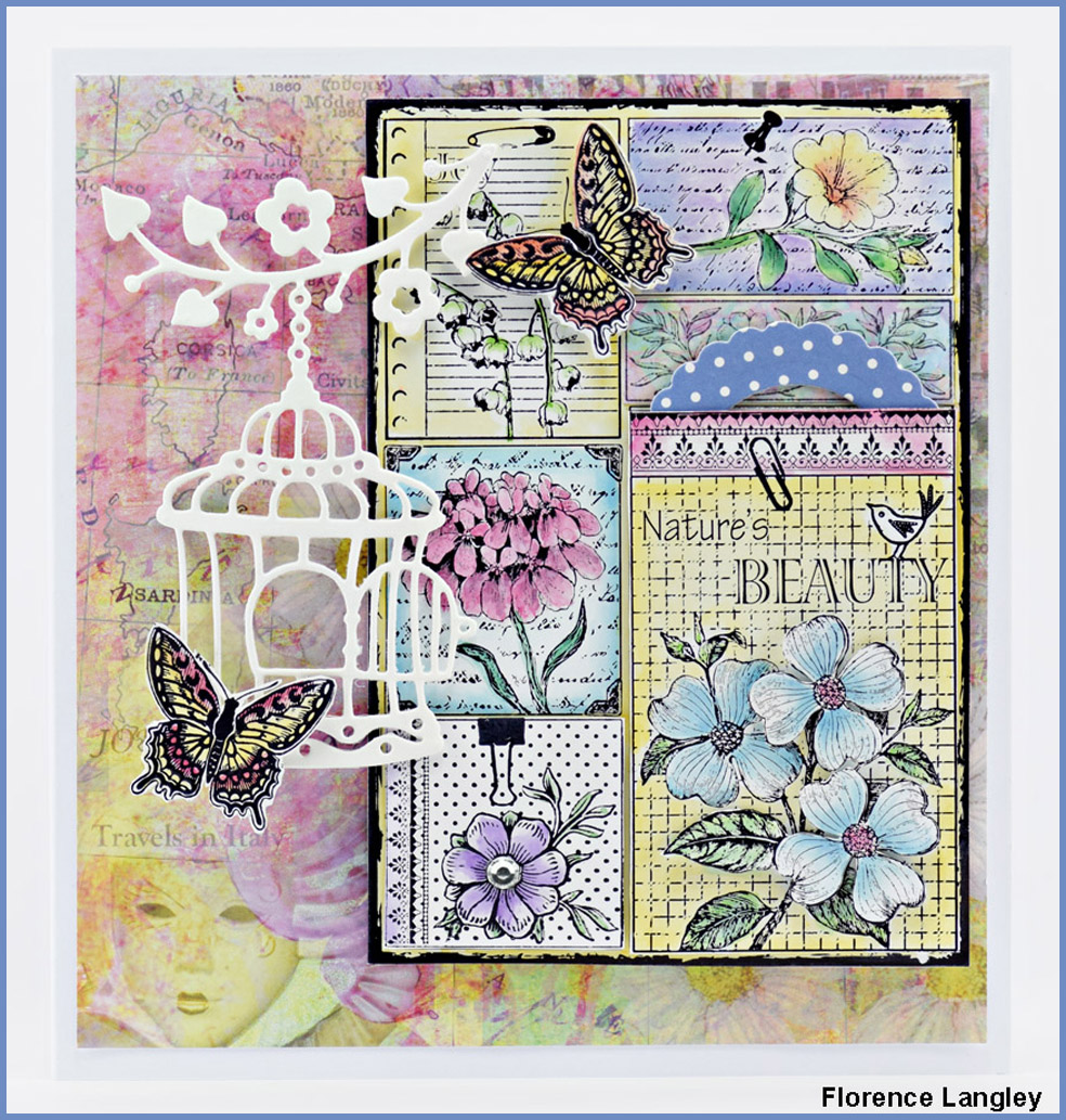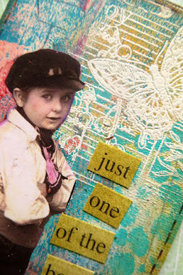 And Helen has been very creative and textural with our stamps and also with an image from our People & Places book....